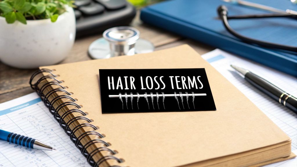 Diving into the world of hair loss treatments can feel a bit like learning a new language. You'll hear medical names for different conditions (like Alopecia), technical terms for the biological processes causing the thinning, and a whole host of names for the treatments themselves. Getting a handle on these key terms is the best first step you can take. It puts you in the driver's seat for an informed chat with a specialist and helps you confidently choose the right path forward.