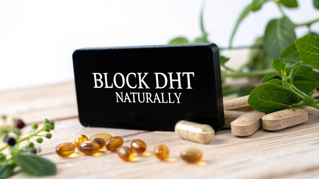The whole point of natural DHT-blocking strategies is to intervene in this process. By making smart choices with your diet, lifestyle, and certain supplements, you can help reduce how much testosterone gets converted into follicle-damaging DHT. It’s all about gently nudging your hormonal balance back in a hair-friendly direction.
